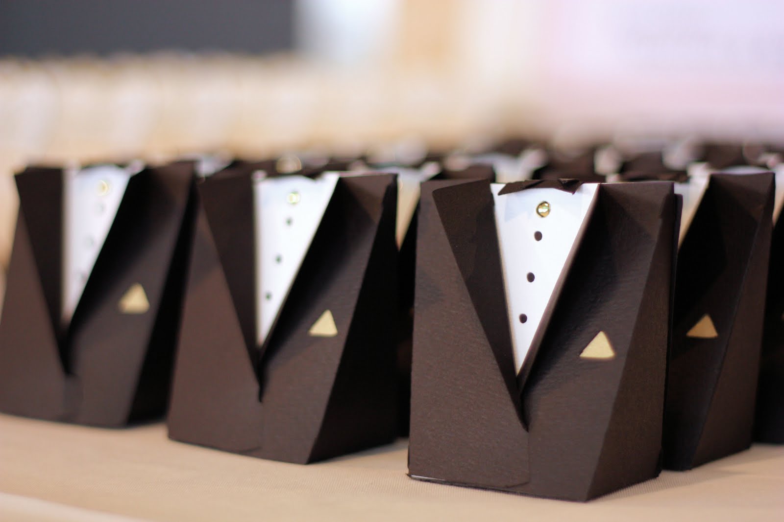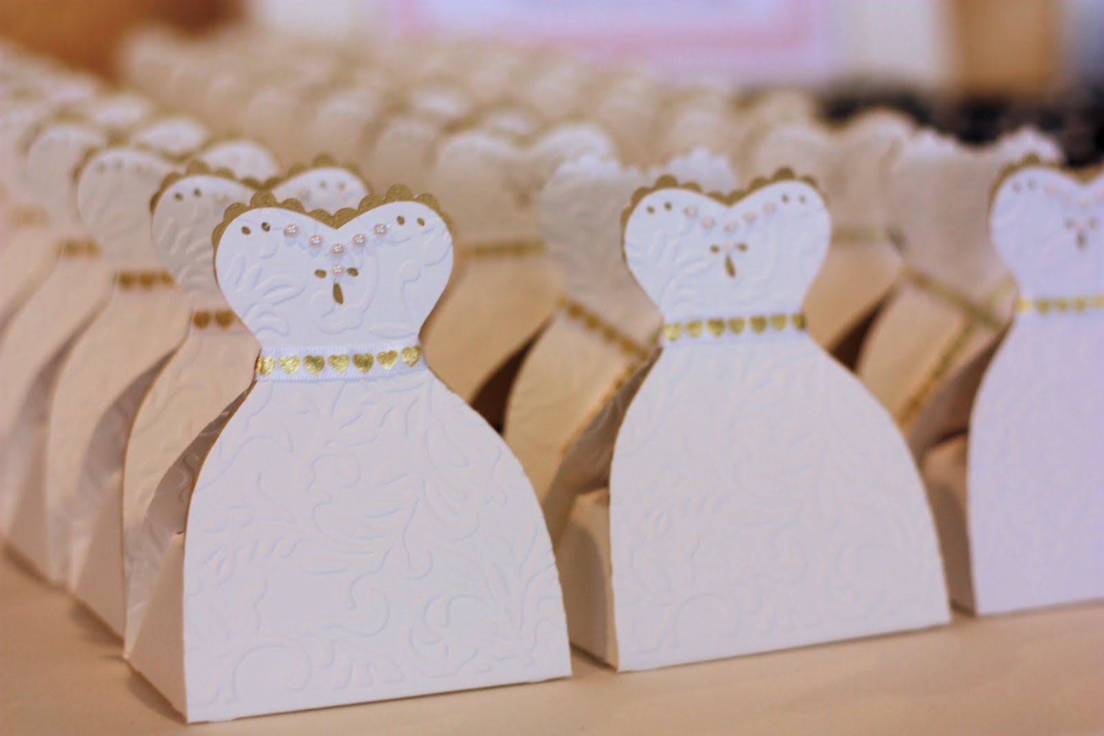 Nice job! Love how you embossed the dress favor and the neat gold accents on the groom favor. Your mom and dad are certainly blessed by you!