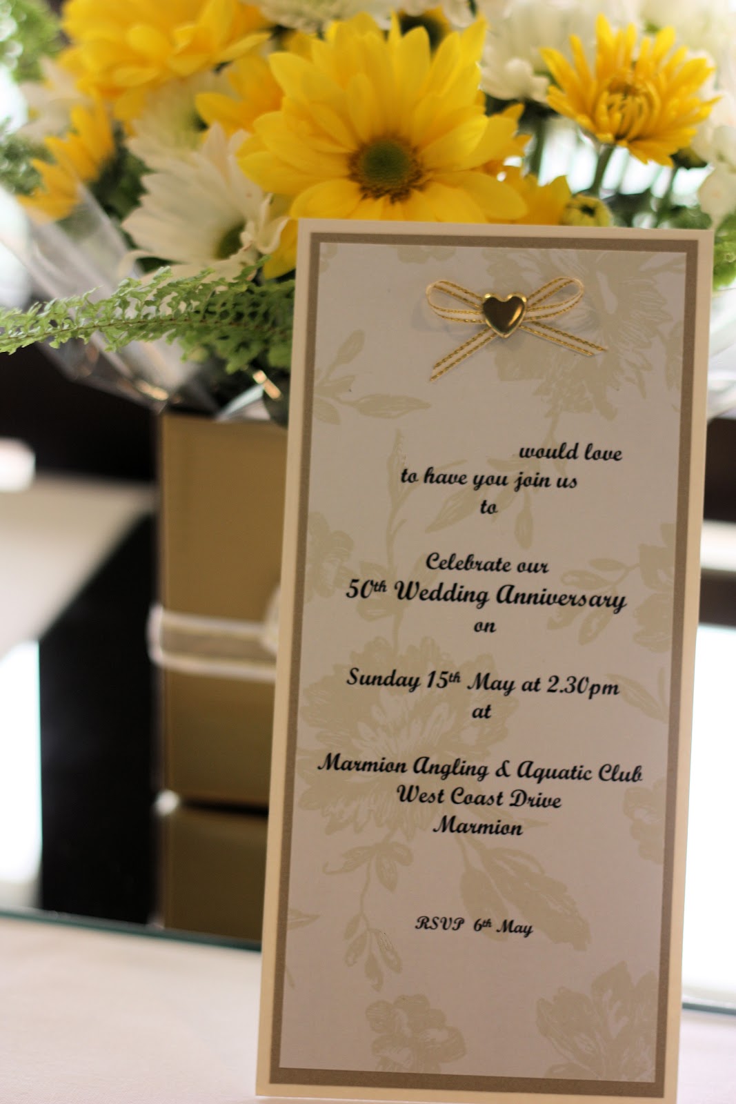 Congratulations to your parents on this very special occasion. My parents will be celebrating their 50th next year!