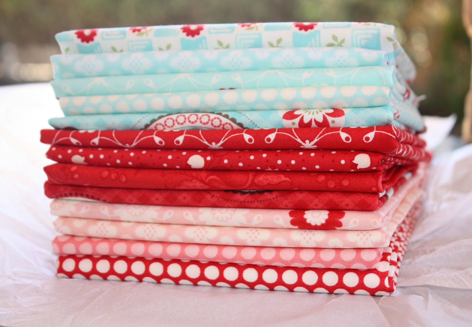 It was a happy mail day today when my order of Bliss arrived from the Ladybug Quilt Shop. This is destined to be a new quilt for Sarah. We will be giving her room a make-over during the summer holidays – with an aqua and red theme.