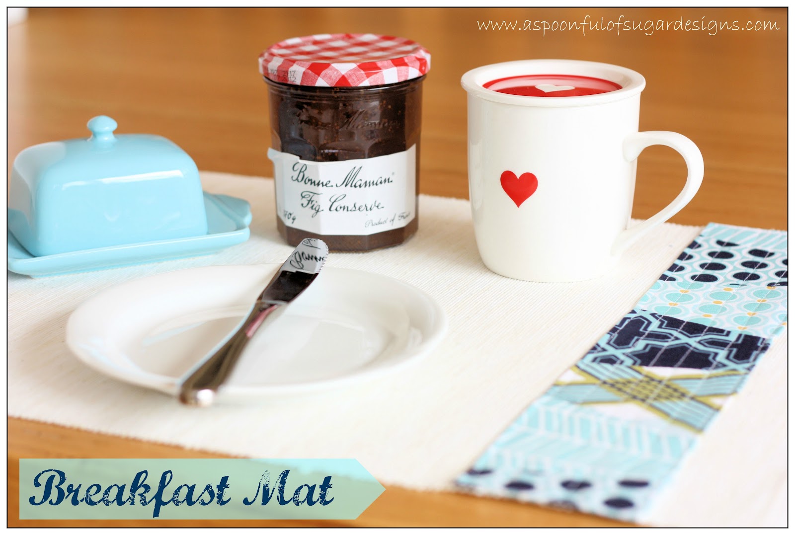 On a recent trip to IKEA we discovered some Marit placemats in a neutral cream colour for only $1.50 each. I bought a few as they are perfect for Breakfast Mats. I added a strip of patchwork made from Tumbler blocks and now it puts a smile on my face when I eat my breakfast.
