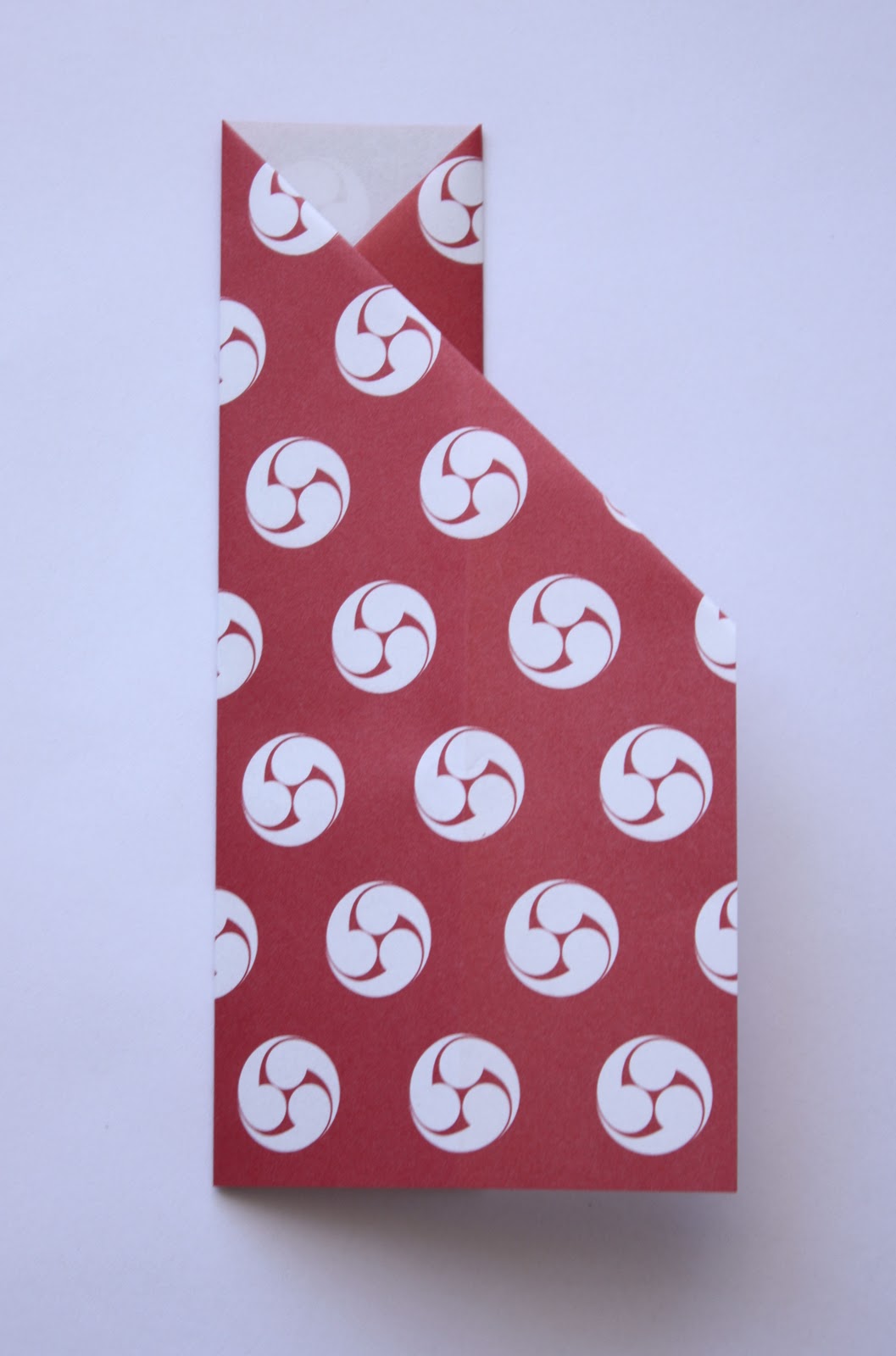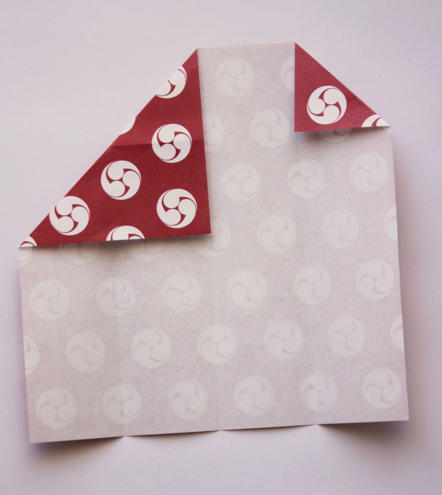 On the top left hand corner, fold the corner over so that it is in line with the middle fold line (Refer to photo)
