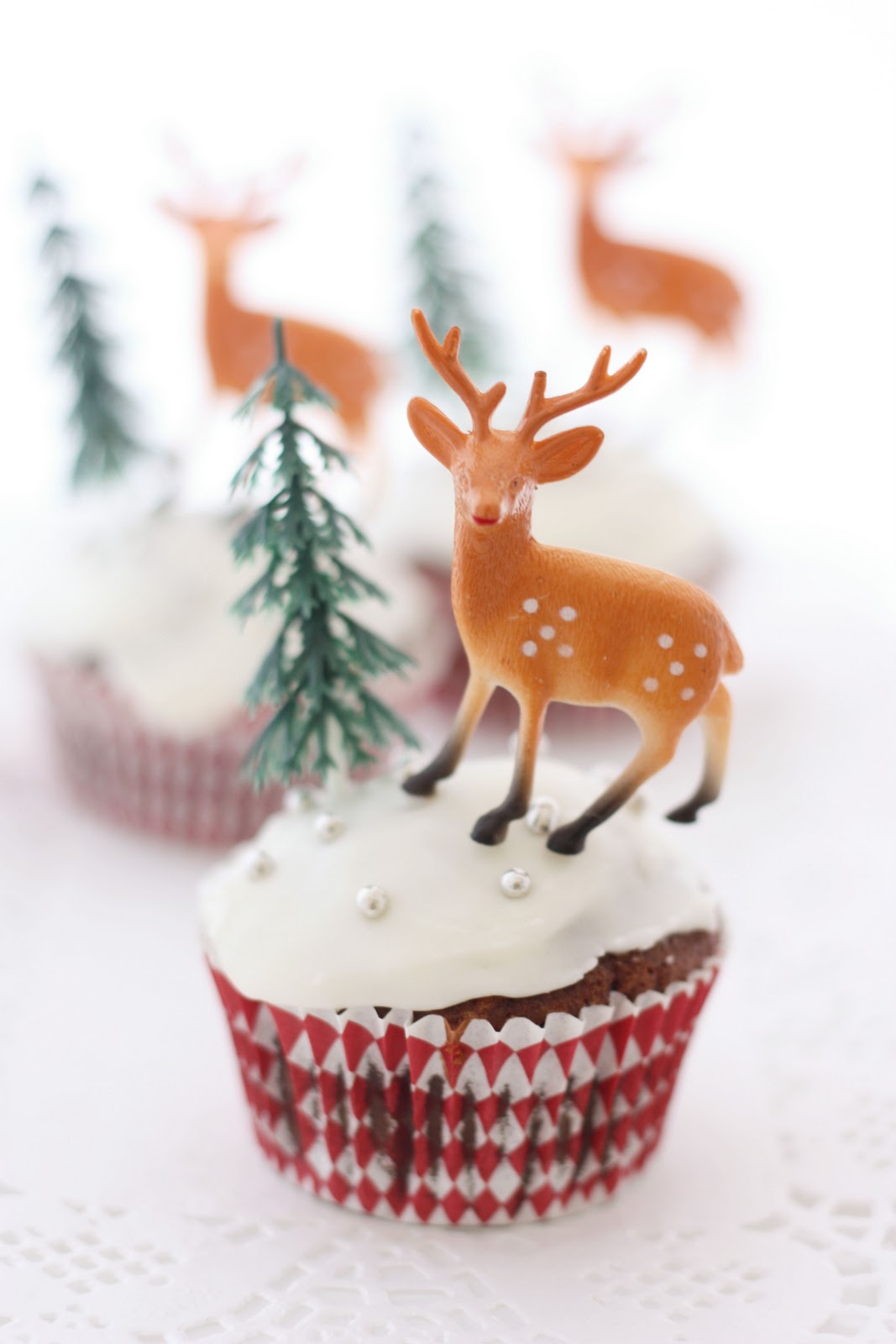 I love the dear on top these cupcakes. The little winter scene played out just says Christmas.