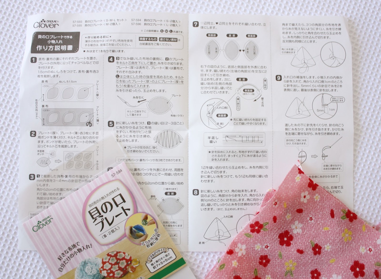 We spotted more in souvenir shops in Japan, covered in lovely chirimen crepe. At Okadaya in Shinjuku, a Japanese craft store, we found that Clover have made plastic forms in three sizes to use when making the clam shell pouches. We bought a kit and some traditional Japanese crepe fabric to make our own. They are also available on the Clover USA site and a number of Etsy sellers also stock them (search for Clover Clam Shell Kit).
