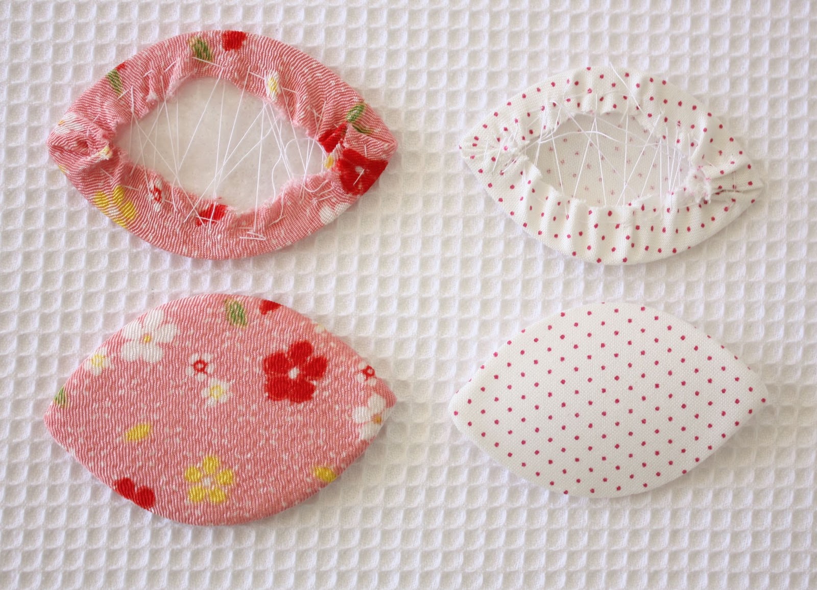 We spotted more in souvenir shops in Japan, covered in lovely chirimen crepe. At Okadaya in Shinjuku, a Japanese craft store, we found that Clover have made plastic forms in three sizes to use when making the clam shell pouches.  We bought a kit and some traditional Japanese crepe fabric to make our own. They are also available on the Clover USA site and a number of Etsy sellers also stock them (search for Clover Clam Shell Kit).