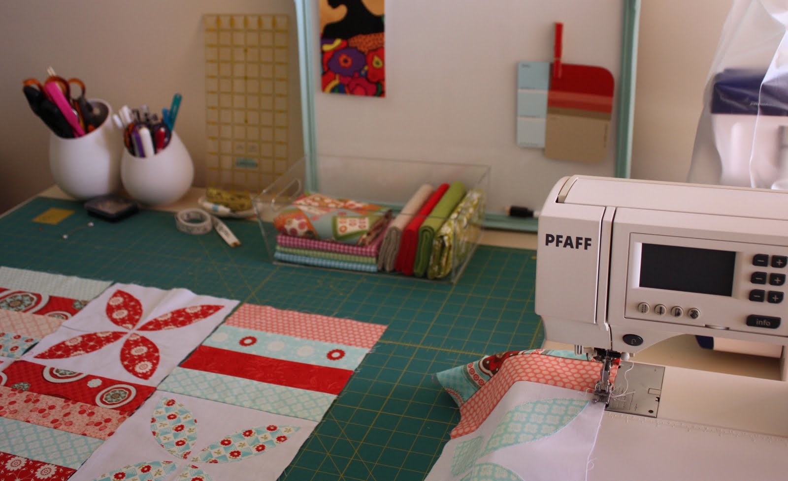 I love seeing where you create, there is so much treasure in that room! You and your trusty Pfaff have made so many beautiful creations together 😉