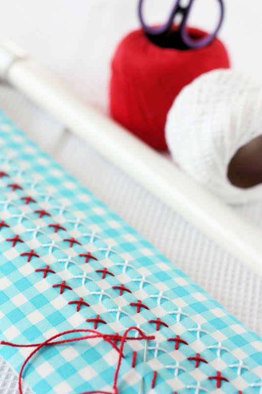 I am also working on a chicken scratch embroidery project – here is a peak at the progress so far.
