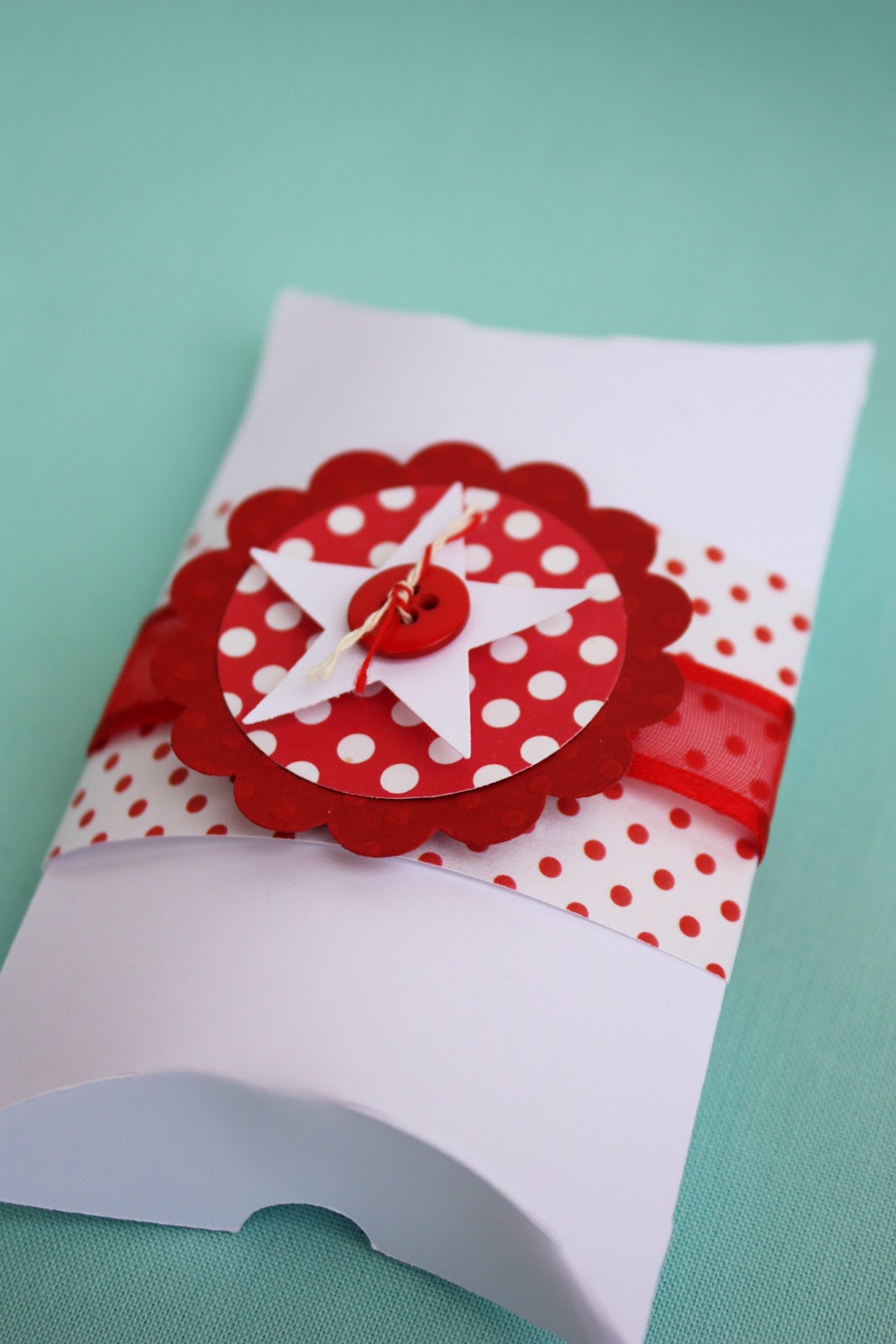 What pretty little treat boxes! I just love the use of red and white polka dot for christmas!