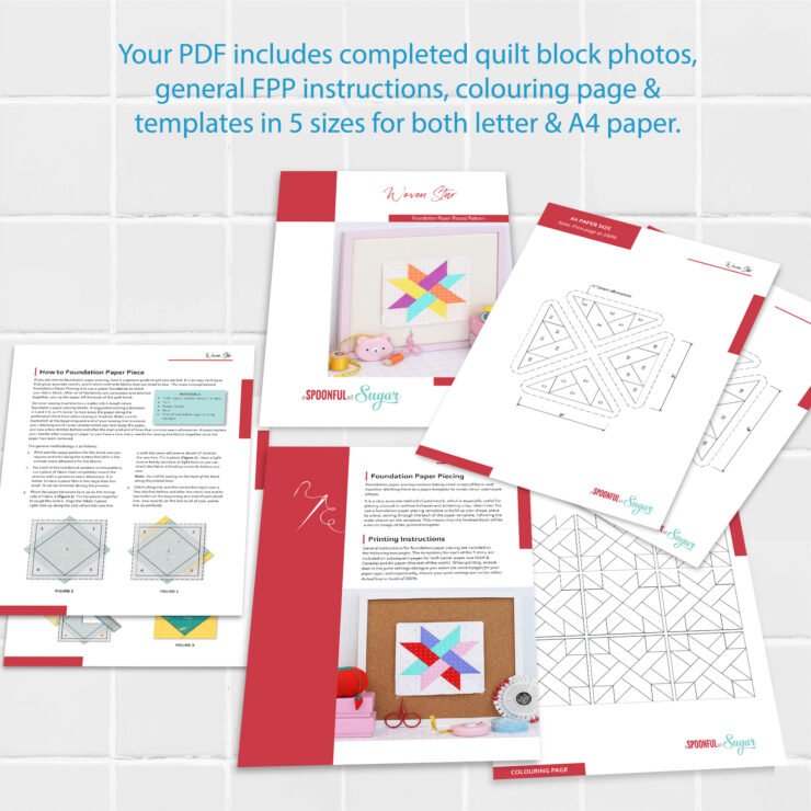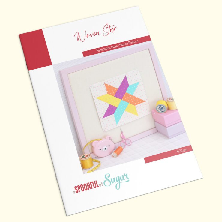 I’m so excited to share my latest design with you — the Woven Star Block, now available as a foundation paper pieced (FPP) pattern in five versatile sizes: 3″, 4″, 5″, 6″, and 8″.