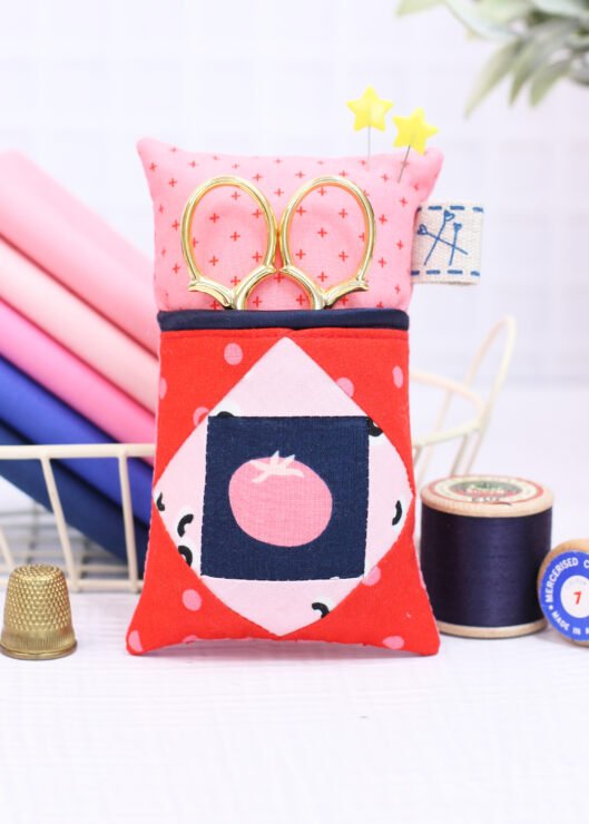 Sewing Buddy Pincushion: A lovely pincushion featuring an economy block pocket (perfect for fussy cutting).