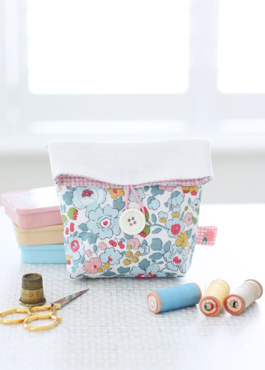 Mini Treat Pouch – Ideal for gifting cotton reels and small sewing supplies. Features a handy pocket on the back for a sweet gift card.