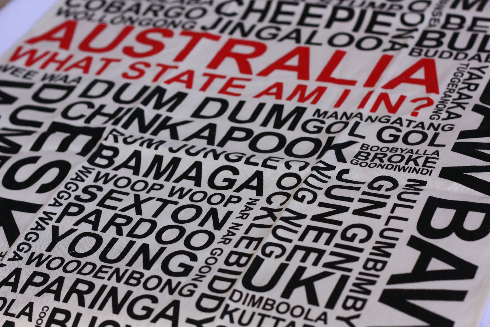 A new linen tea towel I bought today full of fun Aussie place names. This one is destined for some cushions/pillows. I am really loving Typography at the moment.