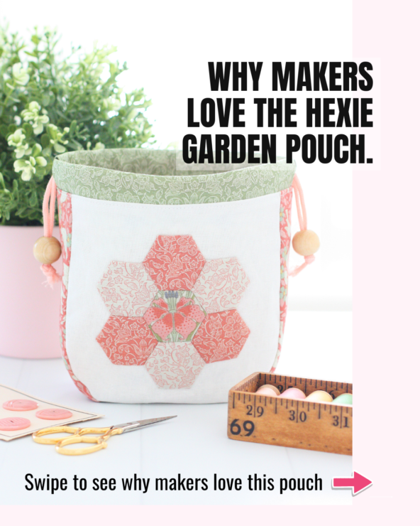 If you’re looking for a quick, satisfying sewing project that’s perfect for scraps, gifting, and a little creative play, the Hexie Garden Pouch is one of my all‑time favourites. It’s a beginner‑friendly design with endless possibilities — whether you love English Paper Piecing, fussy cutting, bold prints, or soft pastels.