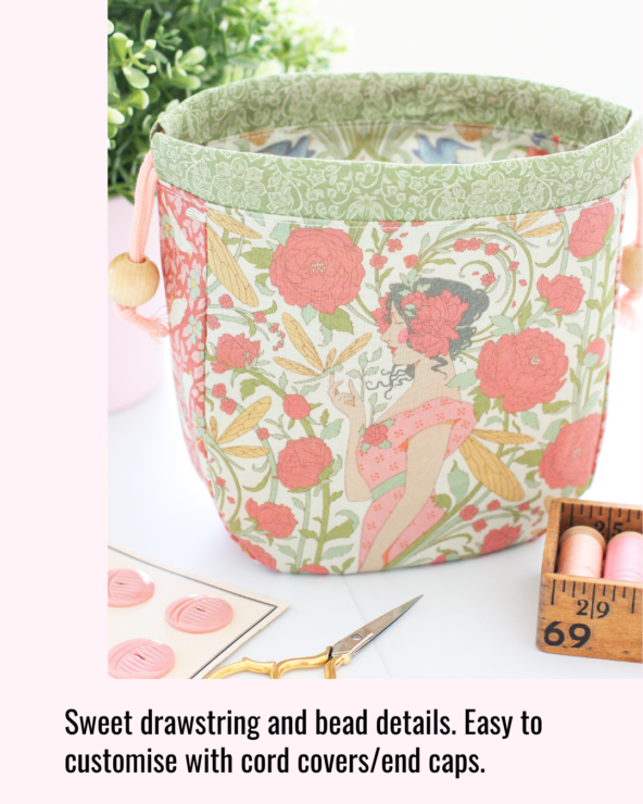 This sweet drawstring pouch is quick to sew, fun to personalise, and perfect for using your favourite scraps. It’s a lovely project for confident beginners and experienced sewists alike — simple construction, satisfying details, and a polished finish every time.