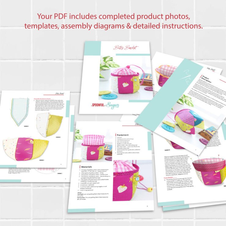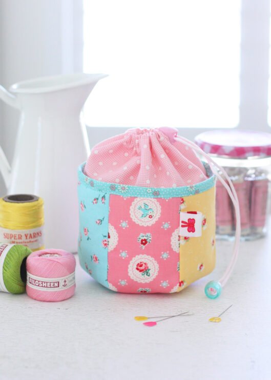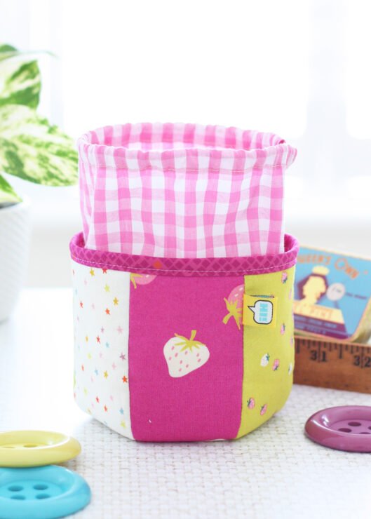 I first stitched the Bitsy Basket using a selection of cheerful Ruby Star Society prints, and it instantly became a favourite. The structured base, soft drawstring closure, basket drawstring cover and petite size make it perfect for holding treats, sewing notions, travel essentials, or tiny treasures. It’s the kind of project that feels satisfying from start to finish—and makes a lovely gift, too.