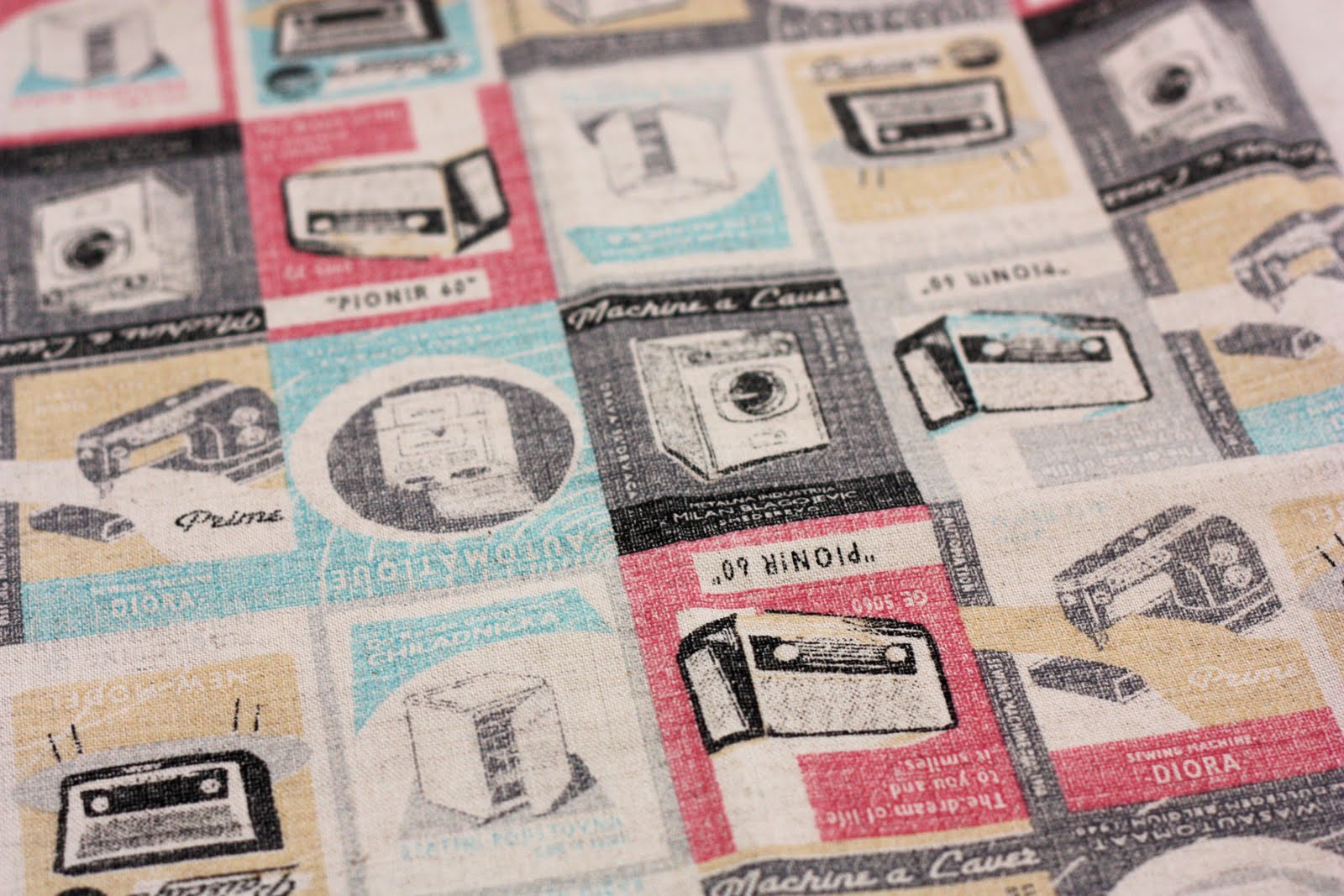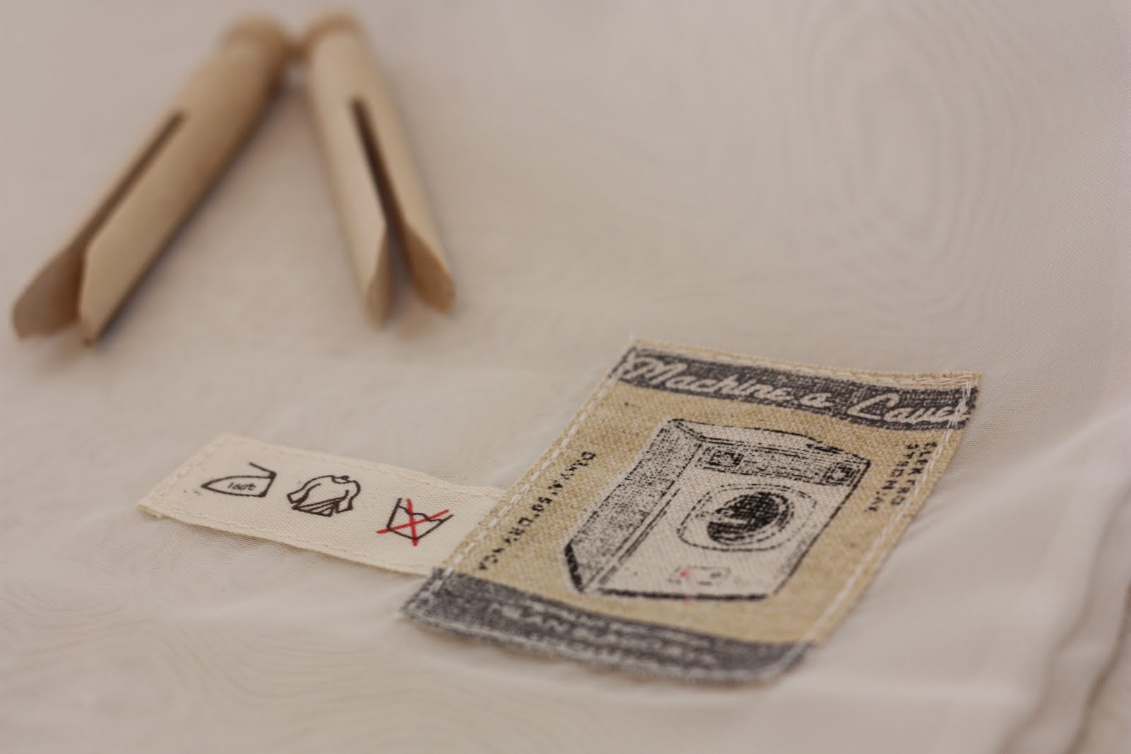Of course it needed a bit of embellishment so I added an appliquéd patch of a washing machine and a tag with washing symbols. Unfortunately the linen had the selvedge missing so I can’t identify it but it was a piece I picked up in Japan in 2010. I love the retro appliances.