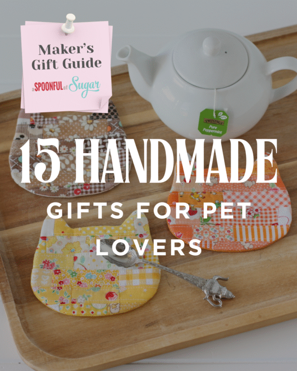 Dog Paw Coaster:https://shop.aspoonfulofsugardesigns.com/shop-2/sleepy-cat-coaster-mug-rug/ Quick, beginner friendly applique project. Team with a coffee mug and speciality teas for a thoughtful gift.