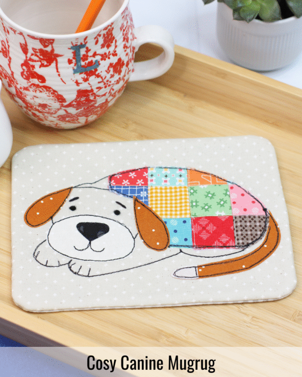Cosy Canine Mugrug: Dog lovers will adore this mugrug featuring a sweet pooch snug under a quilt.