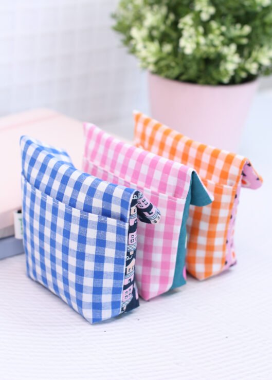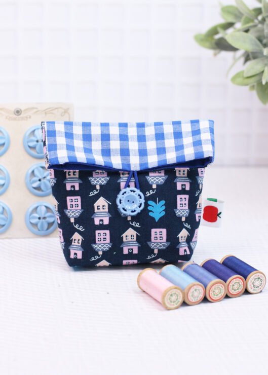 Whether you’re sewing for swaps, gifting, or organizing, this pouch ticks all the boxes. It’s fat quarter friendly, scrap-friendly, and features a clever fold-over top with elastic loop and button closure—no zippers, no fuss! The added back pocket makes it perfect for tucking in extra surprises like notes, sweets, or sewing notions.