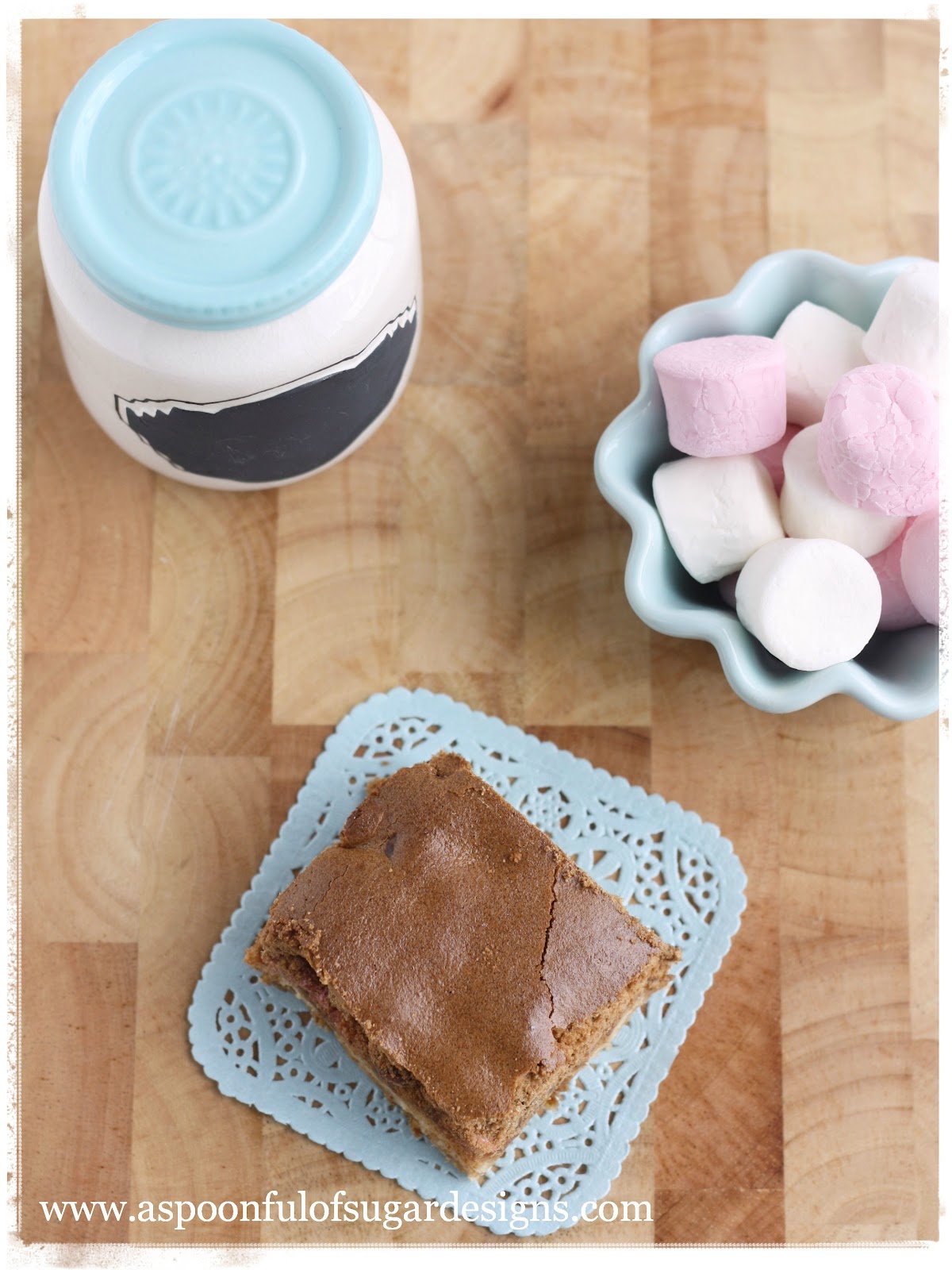 3. In a separate medium bowl, whisk together the flour, salt, and baking powder. Add the dry ingredients to the wet ingredients. Blend until just combined. Spread mixture into 9×13″ pan. Sprinkle with marshmallows, and chocolate chips.