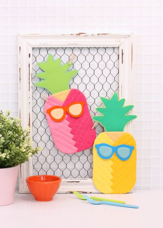 Filed Under: Sewing, Sewing & Quilting Patterns Tagged With: beginner sewing, coaster, felt, fruit, mugrug, pineapple, summer sewing