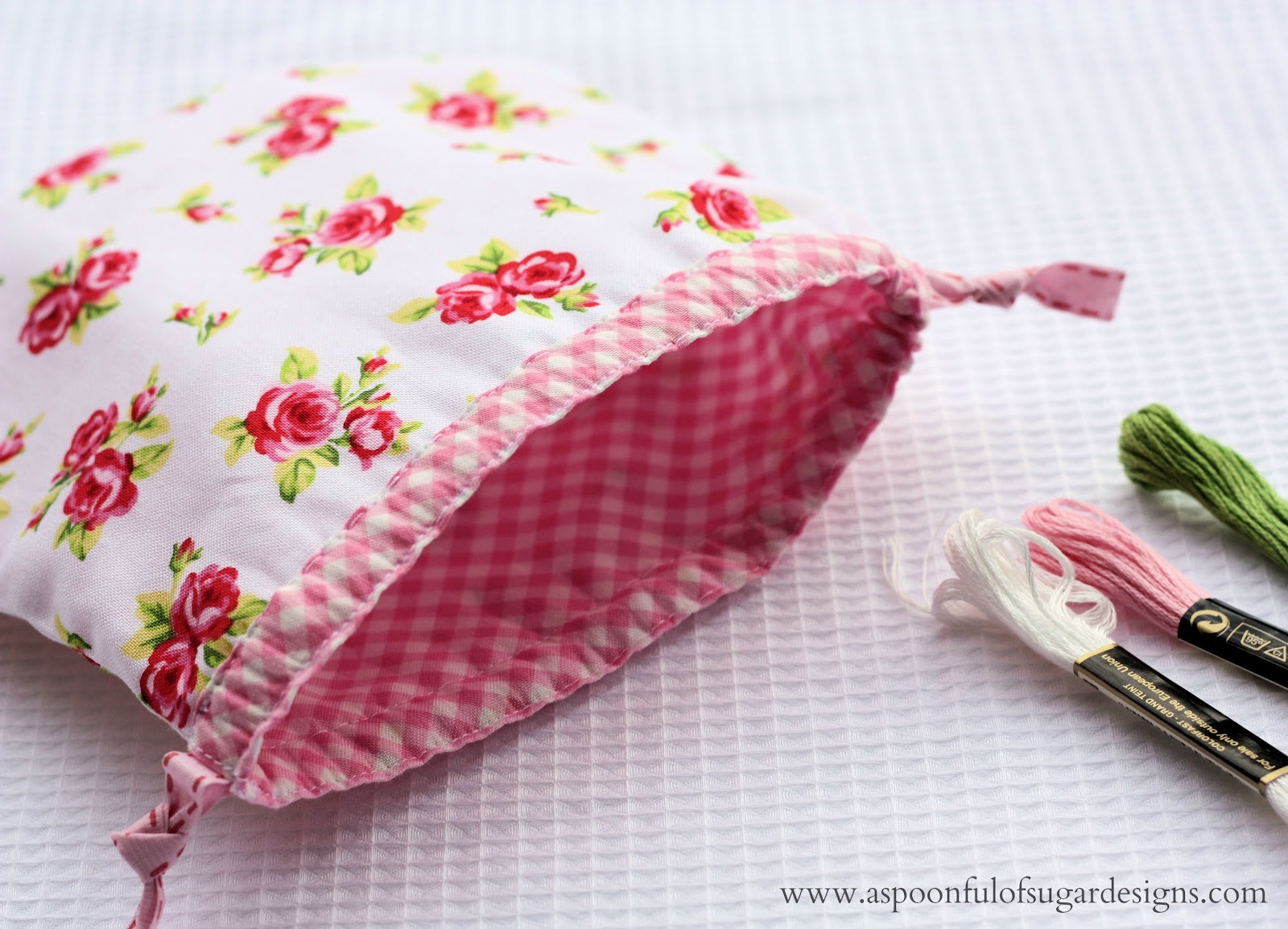Edit: You can find the Pretty Drawstring Pouch Tutorial here.