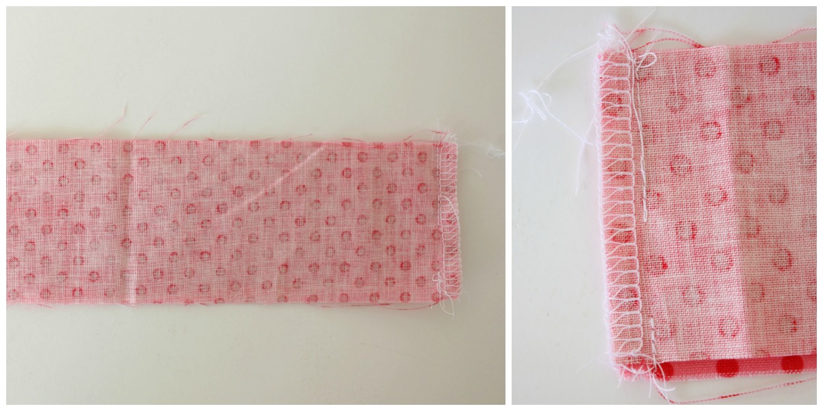 - 2 strips of fabric measuring 12 x 2 1/2 inches (pink polka dot)