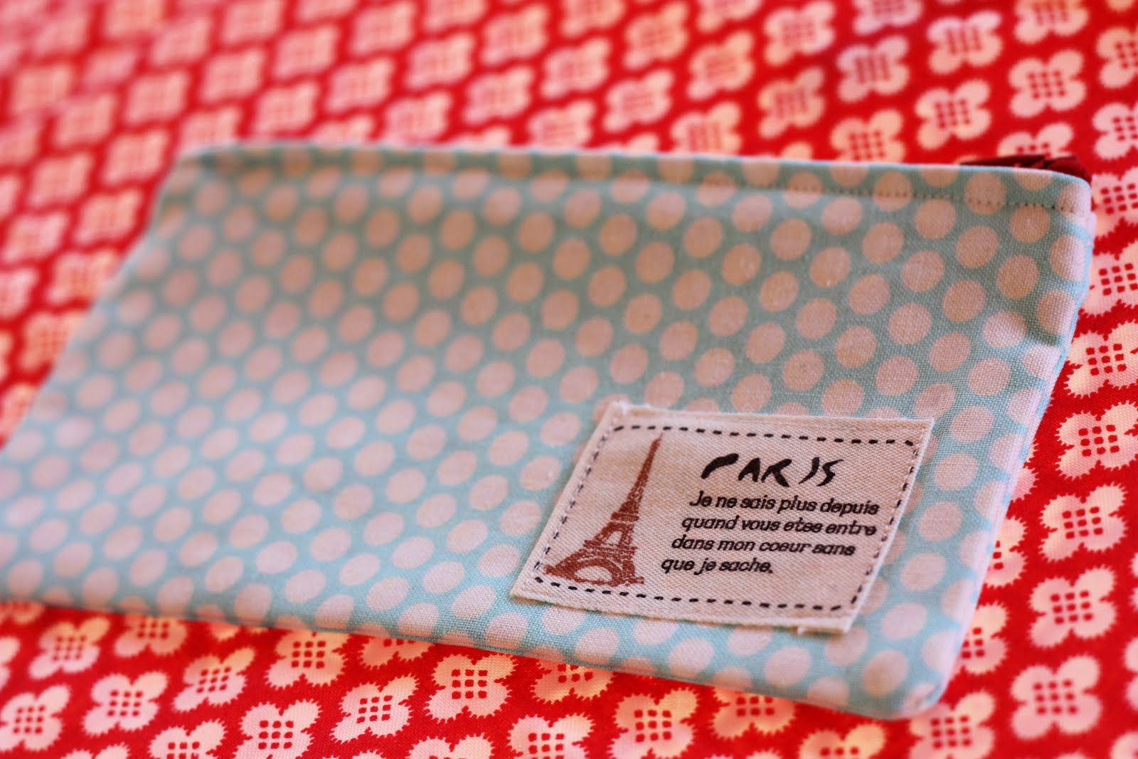 How fun to be able to sew along side Sarah! I love her new zippered pouch, especially that fabulous Paris patch. Where do you find those? Perfect for a little pouch like that. Love seeing the quilt project you’re working on – such cute blocks and colors.