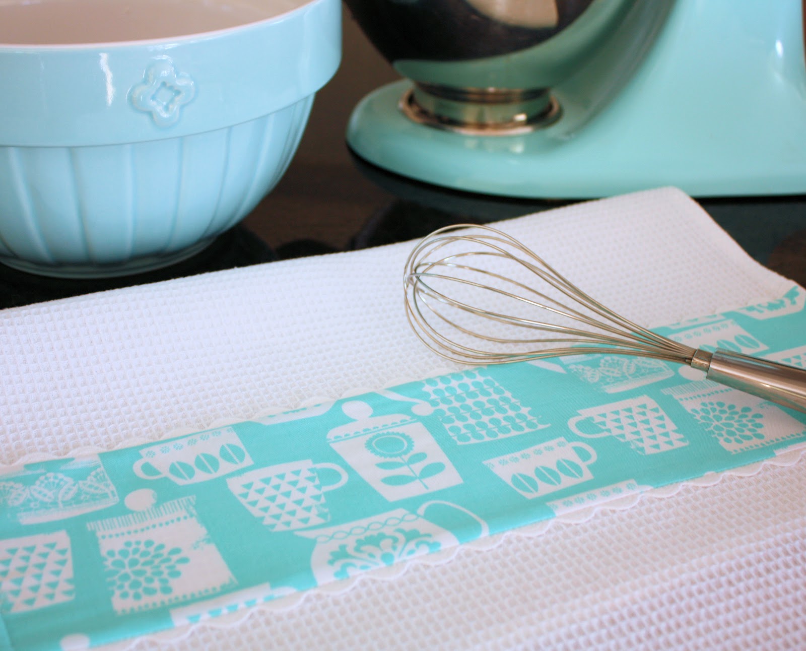 Making your own tea towels is such a quick project. I love having pops of aqua in my kitchen.