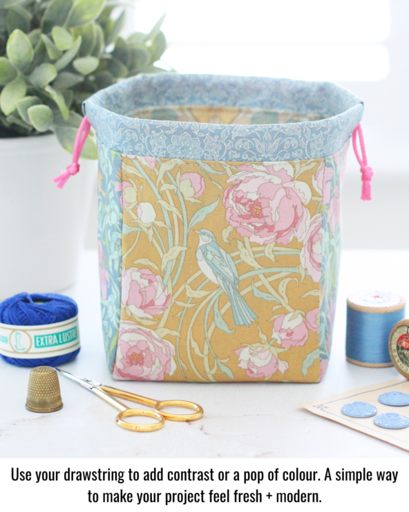 Your drawstring is a wonderful place to add contrast. A bright cord against a neutral fabric can completely change the look of your bag. Don’t be afraid to play with colour — it’s one of the easiest ways to make your project feel modern and fresh.