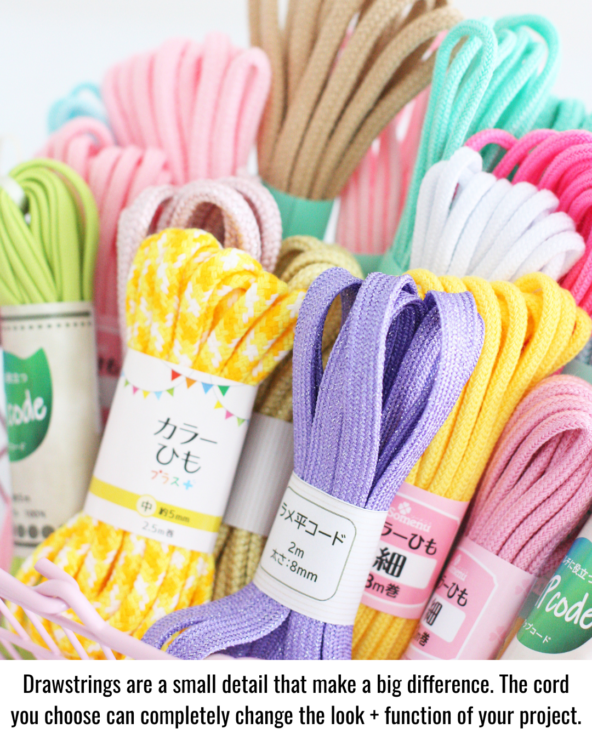 This guide is part of my Elevate Your Makes series, where I share simple ways to add polish and personality to your sewing projects. Today we’re diving into drawstrings — types of cord, how to choose the right one, tips for threading, finishing, and more.