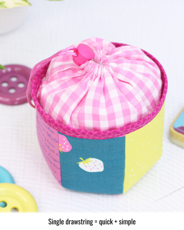 If you want your drawstring to match your fabric perfectly, make your own ties. They’re a great way to use up scraps and add a coordinated finish. Just cut narrow strips, fold, press, and stitch.
