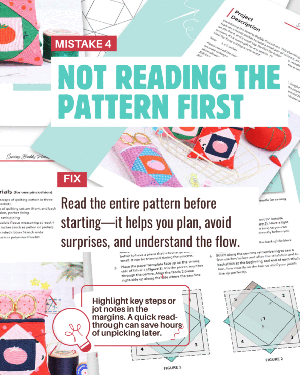 Fix: Read the entire pattern before you cut a single piece. Tip: Highlight key steps and jot margin notes—knowing what’s ahead lets you plan your time, supplies, and any extra embellishments.