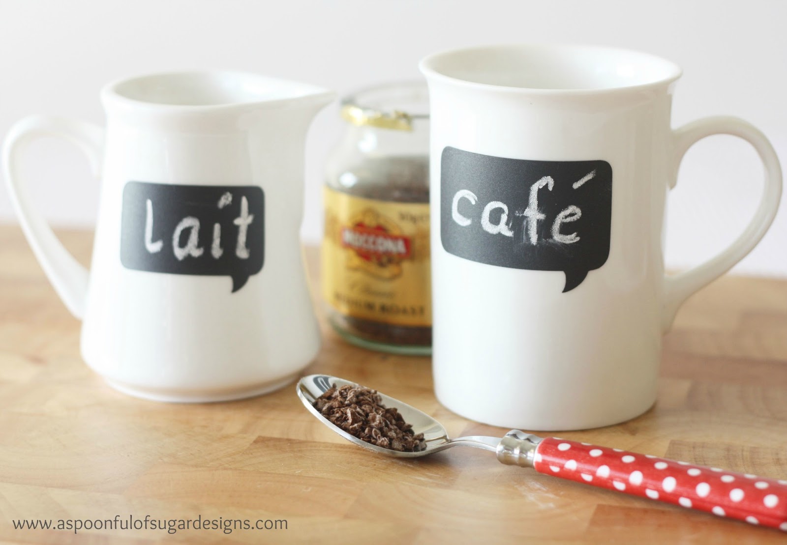 Sarah and I are counting down to our trip to Paris (as you can see in our choice of words!). These speech bubble mugs would make great gifts, you could write a birthday message on the cup. They would also be fun at a party when you are taking coffee orders to make sure you don’t get the drinks mixed up. We have been leaving clever messages on the cups all week.