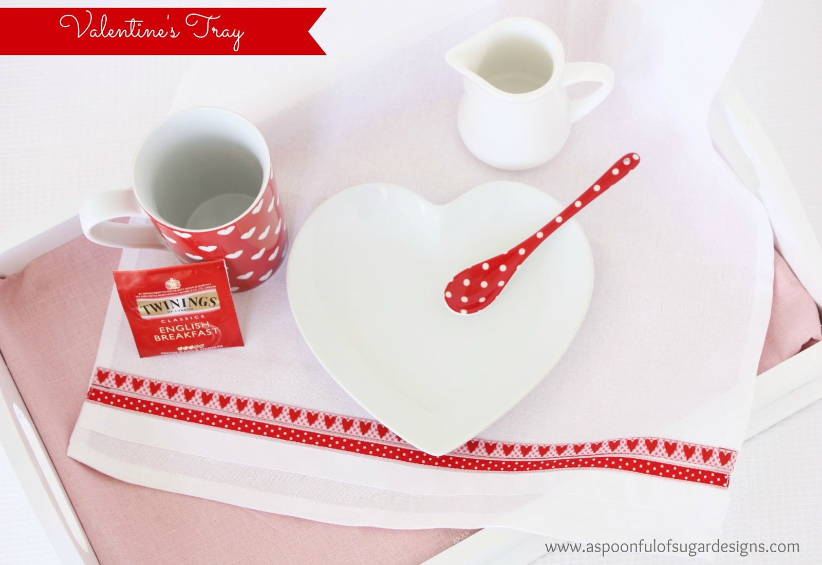 When I was shopping at Target last week, I spotted some sweet Valentine’s inspired coffee mugs and heart shaped plates. This got me to thinking that a Valentine’s Day breakfast in bed would be a great way to start the day. To make it really easy for Mr Sugar, I have the tray all decorated and ready to go.